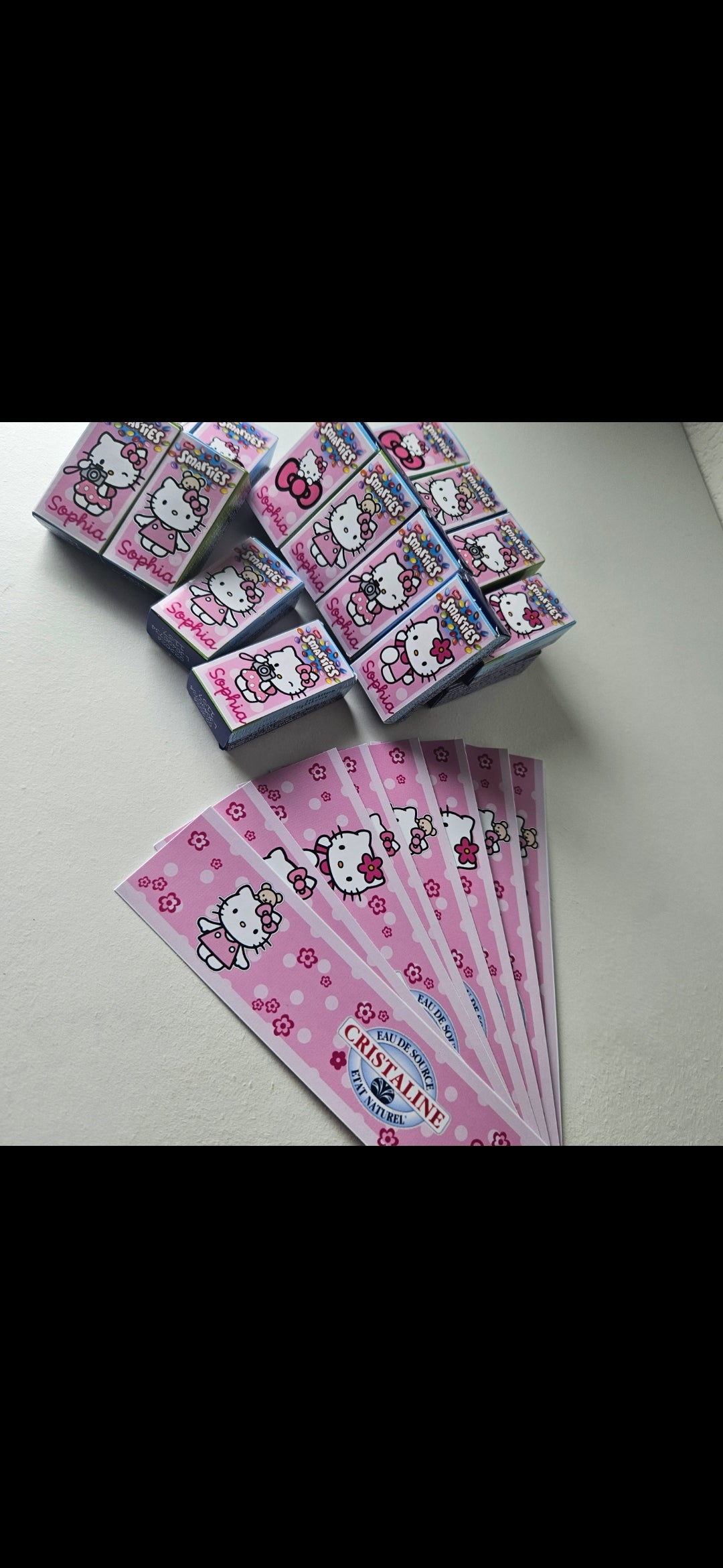 Le Kit Anniversaire est composé de: - Smarties, mignonettes Milka, gobelets, pailles, kits serviettes/fourchette/ronds serviette, assiettes sucettes, étiquette fruit-shoot ou petite bouteille d'eau