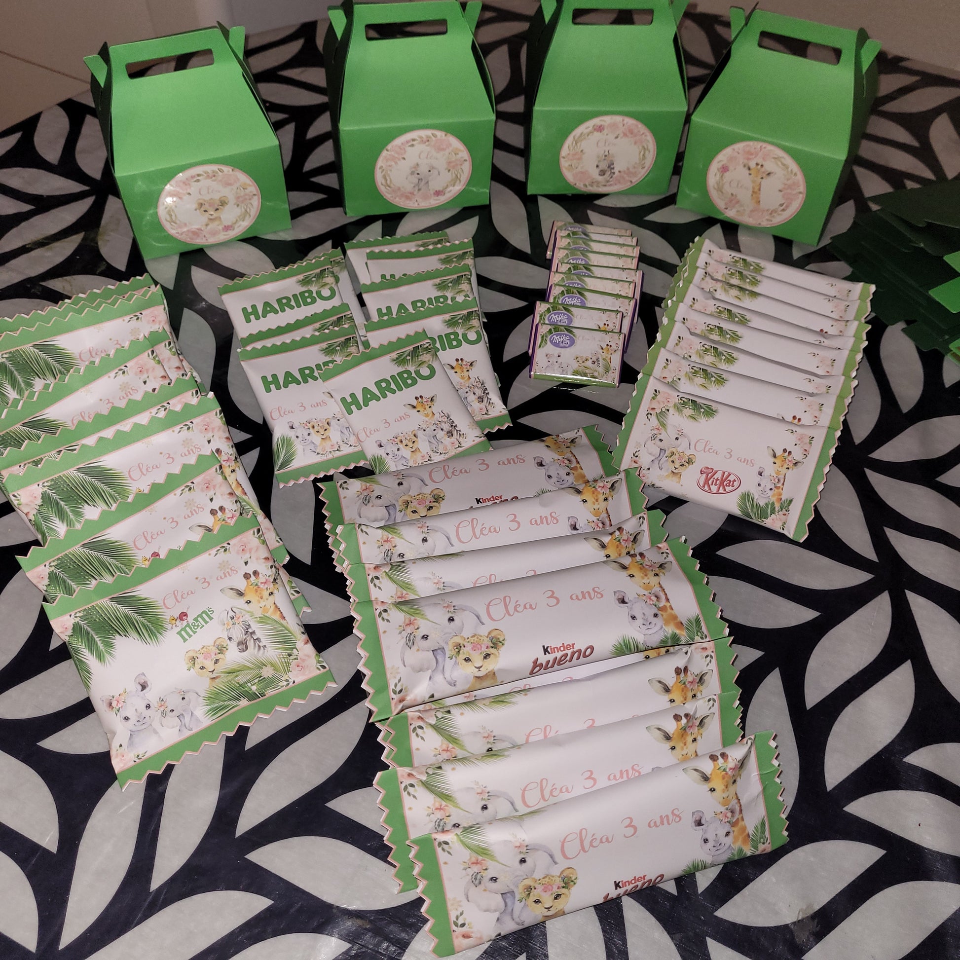 Choisissez tous les éléments dont vous avez besoin dans la liste proposée. Vous pourrez modifier les quantités souhaitées directement dans votre panier. Pour des raisons d'hygiène, aucun produit alimentaire n'est manipulé. Il s'agit d'un sur-emballage. Délai de fabrication : 20/25 jours minimum Délai de livraison : délai classique Colissimo à partir de la date d'expédition. (48-72 heures) Merci de renseigner les champs de personnalisation. (Date de l'évènement, Prénom, âge,…)